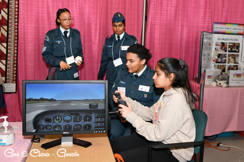 The outdoor aircraft displays featured a variety of aircraft, such as the De Havilland DHC-8 Q400 from Porter Airlines, Air Canada Express Bombardier CRJ200, the Durham Regional Police JetRanger helicopter, vintage and classic aircraft, military vehicles, fire trucks, and more. Participants had the opportunity to experience state-of-the-art virtual reality, an F-18 cockpit simulator, and take photos with an airline captain.