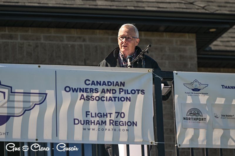 A standout moment on Saturday was the visit from special guest John Henry, former mayor of Oshawa and now Regional Chair for all of Durham Region, along with COPA Directors Doug Ronan, Ashlynne Dale, and Stephen Wilcox, who each took a moment to speak to the crowd. Captain Rick Nihda followed with a thoughtful gesture, presenting Manny Rosario, Co‑Founder and Executive Director of Enterprise Aviation Group, with the title of Honorary Captain of COPA Flight 70. The recognition was given in appreciation of Manny’s generosity, ideas, community involvement, and steady support of general aviation throughout Durham Region and to COPA Flight 70. His quiet leadership and contributions were warmly acknowledged by all.
